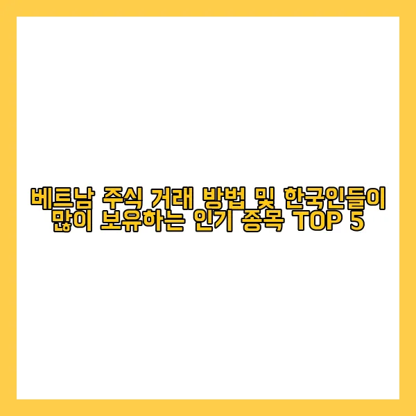 베트남 경제는 최근 빠른 성장세를 보이며, 많은 투자자들의 주목을 받고 있습니다. 특히 한국인 투자자들의 베트남 주식 투자도 활발해지고 있는데요. 그렇다면 구체적으로 어떤 방법으로 베트남 주식을 거래할 수 있을까요? 또한 한국인들이 가장 선호하는 베트남 종목 TOP 5는 무엇일까요? 이를 자세히 알아보겠습니다.
